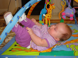 Diana is doing sit ups. Not sure if she thinks this is how you are supposed to roll over or what but she is being really fun these days. Seriously it looks like she is working out doing sit ups. She also is putting anything and everything in her mouth...clothes, fingers, toys, etc.